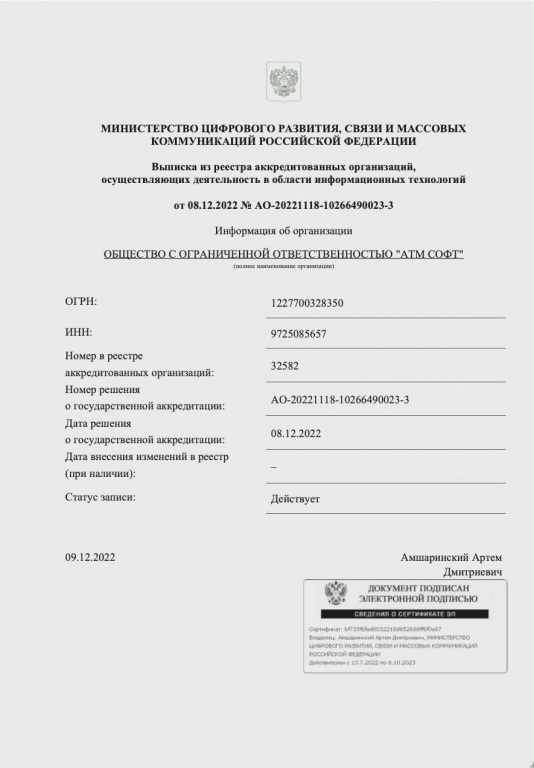 Карточка компании ООО "АТМ СОФТ"